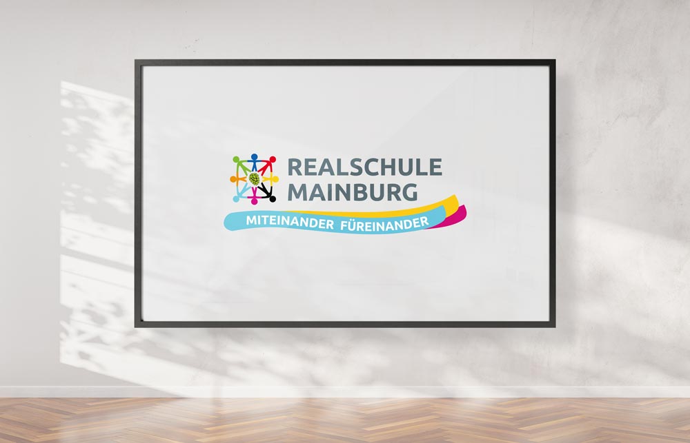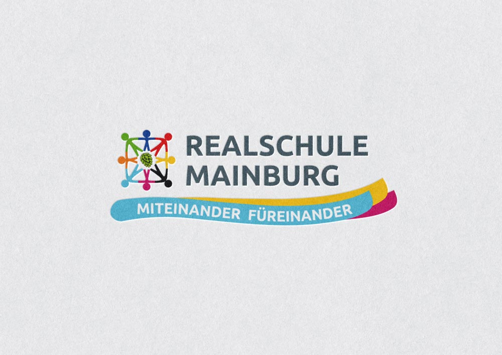 Im Rahmen dieses Projekts sollte dieses Piktogramm nach einer entsprechenden Digitalisierung in komplementärer Form mit dem Schulmotto „Miteinander Füreinander“ verbunden werden. Die gewählte Schriftart spiegelt hierbei die Strukturiertheit und Solidität der Schule wider. Die geschwungenen Striche stehen einerseits in Ihren Farben für Lockerheit und Leichtigkeit und andererseits für die verschiedenen Talente und Persönlichkeiten der Schüler, die an der Realschule Mainburg ganz auf ein „Miteinander Füreinander“ zählen dürfen – unabhängig von Herkunft, Talent oder Charakter. Durch die Platzierung der Striche unter dem Schulnamen wird der zwischenmenschliche Unterbau der sachlichen Institution Schule hervorgehoben. Des Weiteren nehmen die Striche Bezug auf den Fluss Abens, der genauso wie der Hopfen prägend für das Leben in der Stadt Mainburg ist.